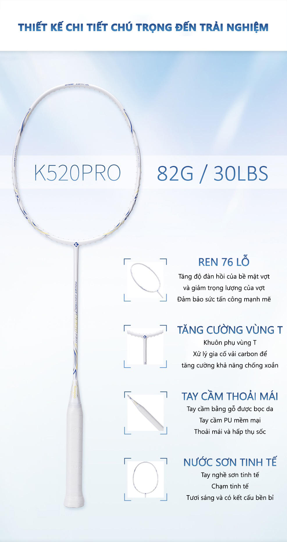 – Thiết kế vợt cầu lông K520 Pro bản mới: Màu sơn tinh tế, màu sắc tươi sáng, đặc sắc hơn