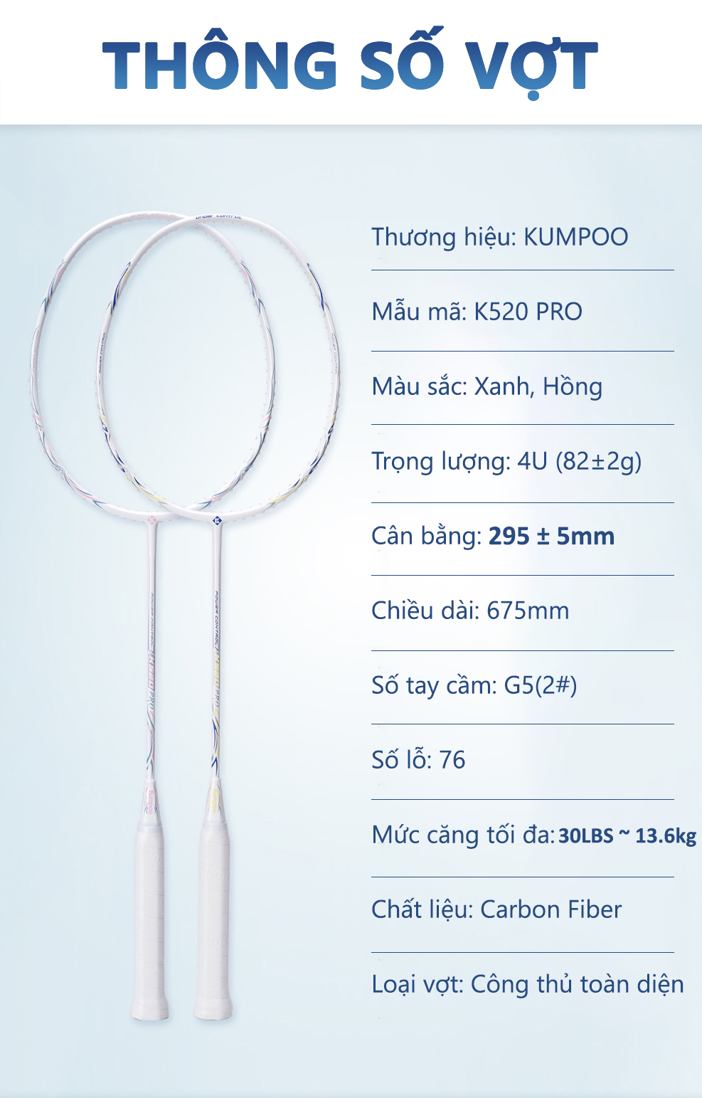 CÔNG NGHỆ VỢT KUMPOO K520 PRO BẢN MỚI