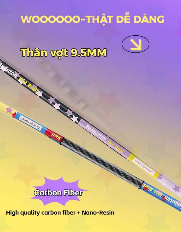 – Stable hand feeling: cảm giác tay ổn định, mặt cắt ngang hộp và thiết kế 76 lỗ giúp tăng độ ổn định khi đánh và chống xoắn.
